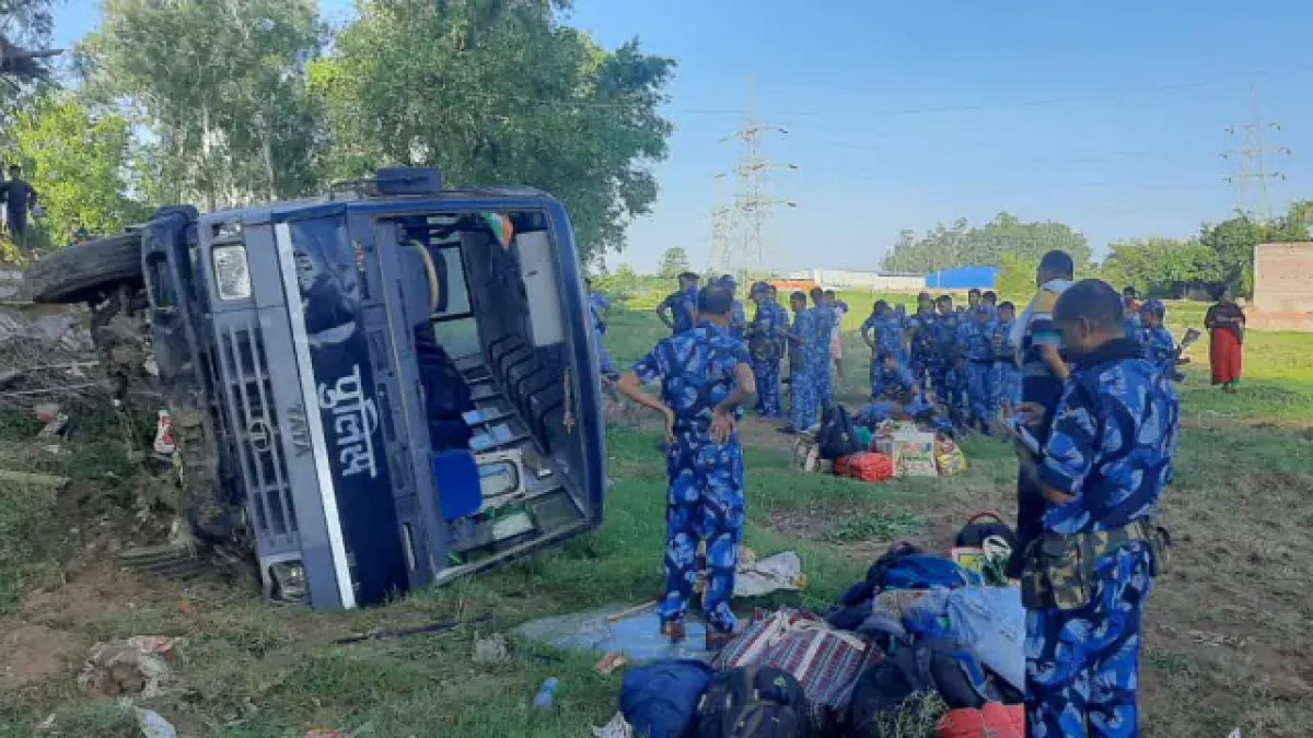 जमुई में पुलिस का दंगा नियंत्रण वाहन पलटा, कई जवान घायल