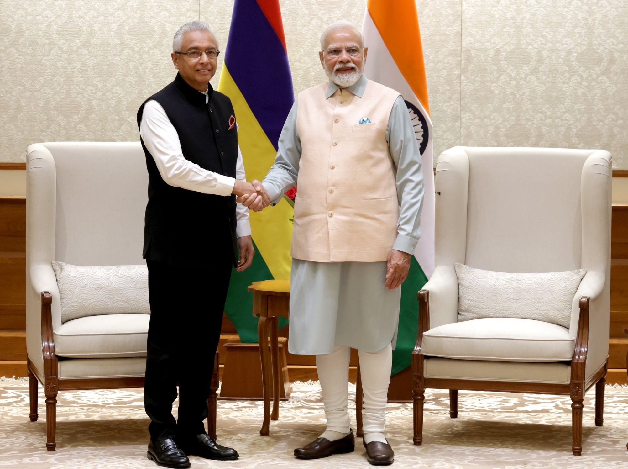 नई दिल्ली- 08 सितंबर। प्रधानमंत्री नरेन्द्र मोदी ने शुक्रवार को मॉरीशस के प्रधानमंत्री प्रवीण जगन्नाथ के साथ अपने आवास सात लोक कल्याण मार्ग पर द्विपक्षीय बैठक की। इस दौरान दोनों नेताओं के बीच बुनियादी ढांचे, फिनटेक, संस्कृति और अन्य क्षेत्रों में सहयोग पर चर्चा हुई।