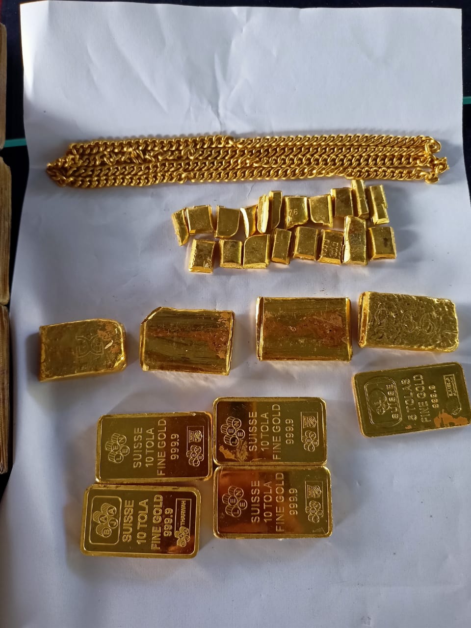 जवानों ने प्लास्टिक बैग की तलाशी ली तो उसमें छह सोने के बिस्कुट बरामद हुए। तत्पश्चात, जवानों ने आसपास के इलाके की गहन तलाशी ली लेकिन वहां और कुछ भी नहीं मिला। भागने वाले तस्करों की पहचान अमल हल्दर और अमित गेन के रूप में हुई है। वे जिले के लक्ष्मीपुर गांव के रहने वाले हैं।
