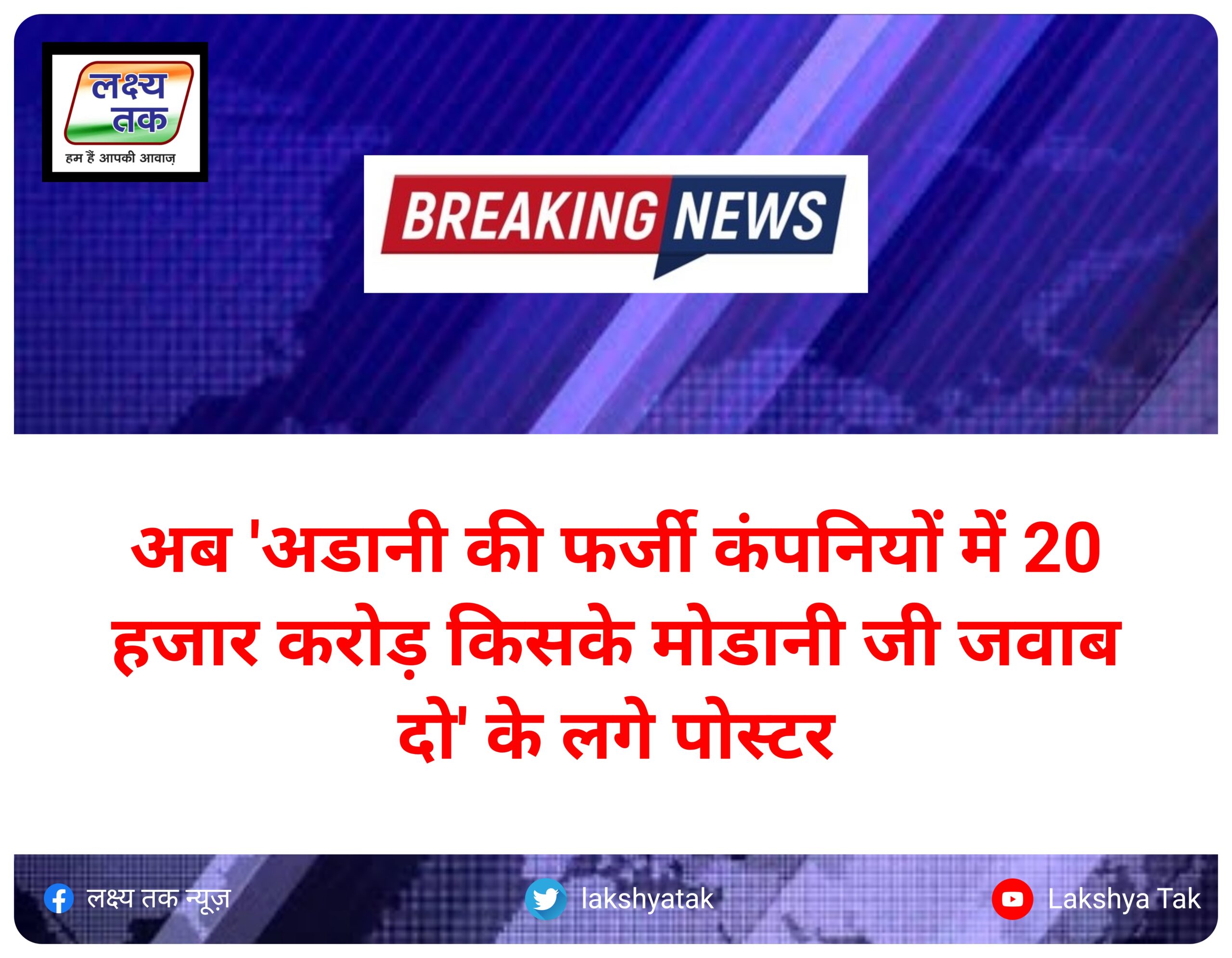 अब ‘अडानी की फर्जी कंपनियों में 20 हजार करोड़ किसके मोडानी जी जवाब दो’ के लगे पोस्टर