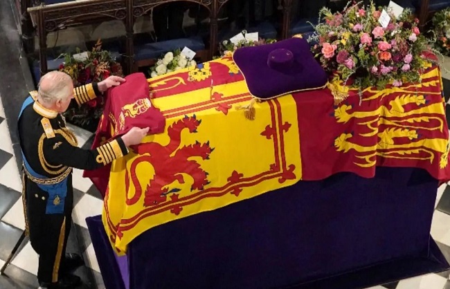 महारानी एलिजाबेथ द्वितीय को दफनाने समय किंग चार्ल्स बेहद गमगीन हो गए थे। महारानी के पार्थिव शरीर को ताबूत विंडसर कैसल में रॉयल वॉल्ट में उतारा गया। किंग जॉर्ज पंचम मेमोरियल चैपल में महारानी को दफनानाया गया।