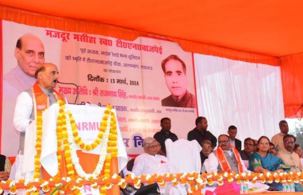 राजनाथ सिंह ने बुधवार को आलमबाग थाने चौराहे पर स्थित रेलवे कर्मचारी यूनियन पूर्व अध्यक्ष वरिष्ठ नेता टी.एन बाजपेई की प्रतिमा पर श्रद्धा सुमन अर्पित किए। उनकी स्मृति में चौराहे का नाम टी एन वाजपेई चौराहा किए जाने पर आयोजित कार्यक्रम को संबोधित कर रहे थे।