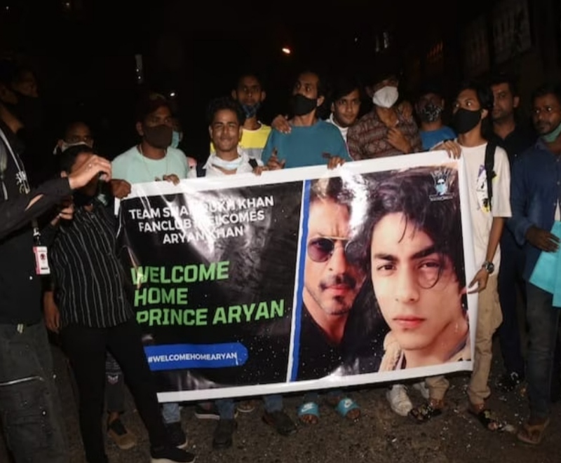 मुंबई-28 अक्टूबर। फिल्म अभिनेता शाहरुख खान के बेटे को कु्रुज ड्रग पार्टी में जमानत मंजूर होने की खबर मिलने के बाद उनके प्रशंसकों ने बांद्रा स्थित मन्नत निवास पर जोरदार जश्न मनाया। हाई कोर्ट में जमानत मंजूरी के बाद लीगल टीम भी मन्नत पर पहुंची और शाहरुख खान एवं गौरी खान ने इन सभी का आभार व्यक्त किया। वकील सतीश माने शिंदे ने भी आर्यन खान को जमानत मिलने के बाद कहा कि सत्यमेव जयते। आर्यन खान के छोटे भाई अबराम ने मन्नत की छत पर चढ़कर अलग तरीके से अपनी खुशी का इजहार किया तो प्रशंसकों ने आर्यन प्रिंस कम बैक जैसे बैनर लहराया और दीपावली से पहले ही मन्नत के बाहर जमकर फटाखे फोड़े, आतिशबाजी भी की।