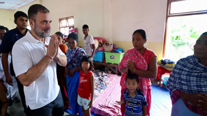 इंफाल में बाढ़ प्रभावितों से मिले राहुल गांधी