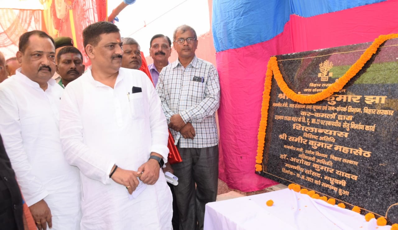 मधुबनी-19 अक्टुबर। बिहार सरकार के जल संसाधन एवं सूचना एवं जनसंपर्क मंत्री संजय कुमार झा बुधवार को पंडौल प्रखंड के शुभंकरपुर में जल संसाधन विभाग द्वारा आयोजित कार्यक्रम में शामिल हुए। मौके पर उन्होंने जल संसाधन विभाग द्वारा उग्रनाथ शाखा नहर के आरडी 99.10 एवं आरडी 99.60 पर नवनिर्मित द्विपथीय सेतु का लोकार्पण किया। साथ ही आरडी 109.22 पर एक एकपथीय सेतु के निर्माण कार्य का शिलान्यास किया। नहर पर दो द्विपथीय पुलों का निर्माण हो जाने से पंडौल प्रखंड के शुभंकरपुर, भवानीपुर, नवटोल और शकरपुरा सहित आसपास के अनेक गांवों के निवासी लाभान्वित होंगे। इससे क्षेत्र के लोगों के लिए बाबा उग्रनाथ मंदिर तक आवागमन भी सुलभ हो गया है। मौके पर संजय कुमार झा ने कहा कि मिथिला की अति महत्वाकांक्षी पश्चिमी कोसी नहर परियोजना के अंतर्गत मुख्य नहर के बिंदु 141.33 से निस्सृत उग्रनाथ शाखा नहर की कुल लंबाई 36.63 किलोमीटर है। उग्रनाथ शाखा नहर में इस वर्ष खरीफ अवधि में पहली बार अंतिम छोर तक पानी पहुंचा है, जिससे खजौली, राजनगर और पंडौल प्रखंड के लगभग 15,115 हेक्टेयर क्षेत्र में सिंचाई सुविधा मिलने लगी है। उन्होंने कहा कि जल संसाधन विभाग ने यह उपलब्धि ऐसे वर्ष में हासिल की है, जब मॉनसून सीजन में कम बारिश के कारण प्रदेश के कई जिलों को सूखे की स्थिति का सामना करना पड़ा है। पुलों के लोकार्पण एवं शिलान्यास के उपरांत जल संसाधन मंत्री ने शुभंकरपुर और मिन्ही गांव के पास उग्रनाथ शाखा नहर में प्रवाहित हो रहे जल का अधिकारियों के साथ निरीक्षण भी किया और नहर में पानी की उपलब्धता पर खुशी जताई। इस मौके पर उन्होंने मुख्य अभियंता हरिनारायण सिंह को निर्देश दिया कि 36.63 किलोमीटर लंबी उग्रनाथ शाखा नहर के तटबंध पर सड़क बनाने का प्रस्ताव तैयार कर मुख्यालय को भेजें। उल्लेखनीय है कि उग्रनाथ शाखा नहर के तटबंध पर सड़क बन जाने से खजौली,राजनगर और पंडौल प्रखंड के ज्यादातर गांवों के निवासियों को सुगम आवागमन के लिए का एक नया मार्ग मिल जाएगा। इससे पहले लोकार्पण समारोह में श्री संजय कुमार झा ने कहा कि माननीय मुख्यमंत्री श्री नीतीश कुमार ने बिहार के हर खेत तक सिंचाई का पानी पहुंचाने का निश्चय किया है। नीतीश कुमार जो कहते हैं, उसे पूरा करते हैं। प्रदेश के हर खेत तक सिंचाई का पानी पहुंचने से कृषि क्षेत्र का कायाकल्प होगा। उन्होंने कहा कि मधुबनी एवं दरभंगा जिले में दशकों से लंबित पश्चिमी कोसी नहर परियोजना का कार्य तेजी से पूरा कराया जा रहा है। परियोजना के अंतिम चरण के सात निर्माण कार्यों का शिलान्यास खुद मुख्यमंत्री ने नवंबर 2019 में किया था। श्री संजय कुमार झा ने कहा कि पश्चिमी कोसी नहर परियोजना की अधूरी नहर प्रणाली के निर्माण कार्य के साथ-साथ दो-तीन दशक पहले 