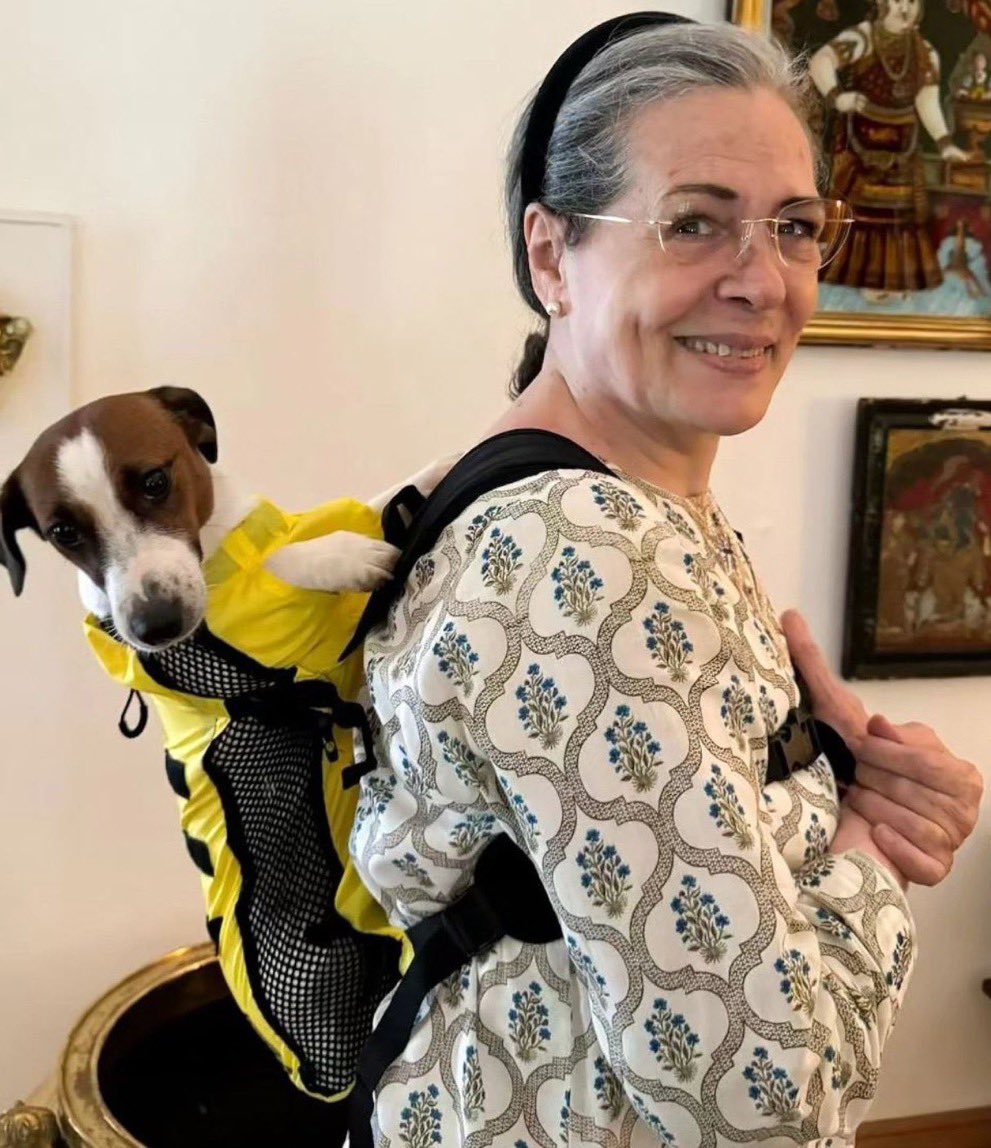 कांग्रेस नेता सोनिया गांधी की अपने पालतू कुत्ते के साथ