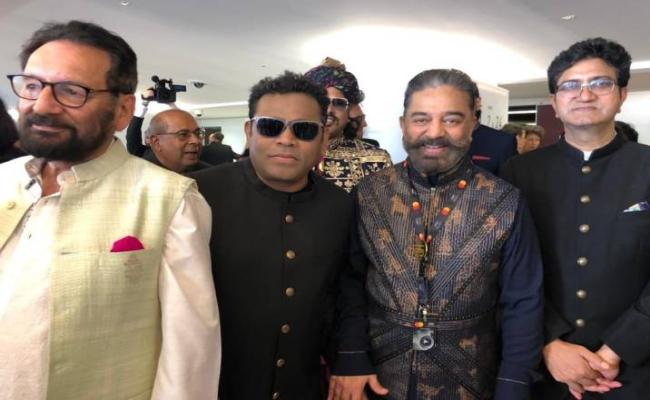 तस्वीर में एआर रहमान सन ग्लासेस के साथ काले रंग का बंद गले वाला सूट पहना है, वहीं कमल हासन ने काले और सुनहरे रंग की पोशाक पहनी हुई है, जबकि आर माधवन और नवाजुद्दीन ब्लैक सूट में दिखाई दे रहे हैं, और अनुराग ठाकुर सफेद अचकन में काफी हैंडसम लग रहे हैं।