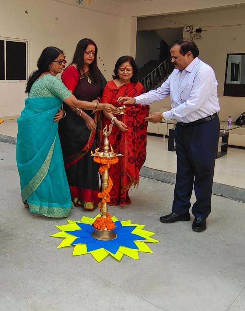 पटना। पटना के प्रतिष्ठित विद्यालयों में से एक नॉलेजग्राम इंटरनेशनल स्कूल के द्वारा इन पर्वों का आयोजन इतना मार्मिक एवं जीवन तथा कि हमारे अतिथि ने इतना तक कह डाला कि काश! मैं भी अभी बच्ची होती जिससे मुझे भी यहां अभिनय करने का मौका मिलता। सभी मुख्य अतिथियों,निदेशक महोदय डा० सी.बी सिंह एवं प्राचार्या महोदया राधिका के. के तिलक अभिषेक से तथा “चंदनस्य महतपुण्यं पवित्रं पापनाशनं” मंत्रोच्चारण से स्वागत किया गया। उत्सव का प्रारंभ हमारे आदरणीय मुख्य अतिथि द्वय, निदेशक एवं प्राचार्या के द्वारा दीप प्रज्वलन कर तथा मंत्रोच्चारण “शुभम करोति कल्याणम” से किया गया तत्पश्चात माँ लक्ष्मी के आगमन की खुशी में लक्ष्मी स्तुति पूजा तथा विद्यालय के मध्य दीप प्रज्ज्वलित किया गया।