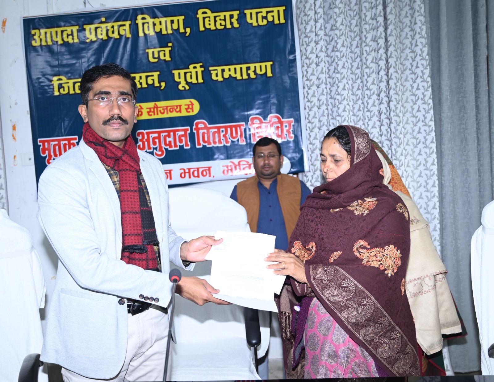 मोतिहारी- 07 फरवरी। जिला आपदा प्रबंधन विभाग के तत्वाधान में मंगलवार डाॅ.राधाकृष्ण भवन में मृतक अनुग्रह अनुदान वितरण शिविर का आयोजन किया गया। जहां मौके पर जिलाधिकारी शीर्षत कपिल अशेक ने राज्य स्वास्थ्य समिति से अनुशंसित 16 पीड़ित परिवारो के बीच प्रति लाभुक को 4 लाख 50 हजार रुपए यानी कुल 64 लाख 80 हजार रुपये का भुगतान प्रमाण पत्र प्रदान करते हुए कहा कि एक सप्ताह के अंदर सभी आश्रितों के खाते में राशि आरटीजीएस के माध्यम से भेज दी जाएगी।