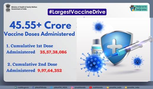 कोविड-19 टीकाकरण 45.55 करोड़ के पार