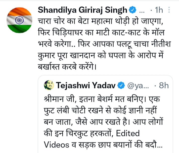 गिरिराज सिंह और तेजस्वी यादव में ट्वीट बार