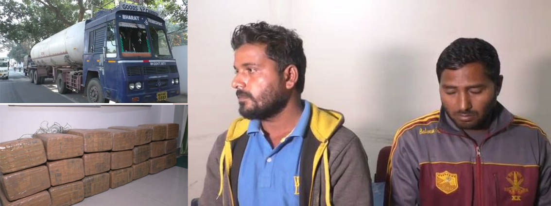 गैस टैंकर से भारी मात्रा में गांजा बरामद, दो गिरफ्तार