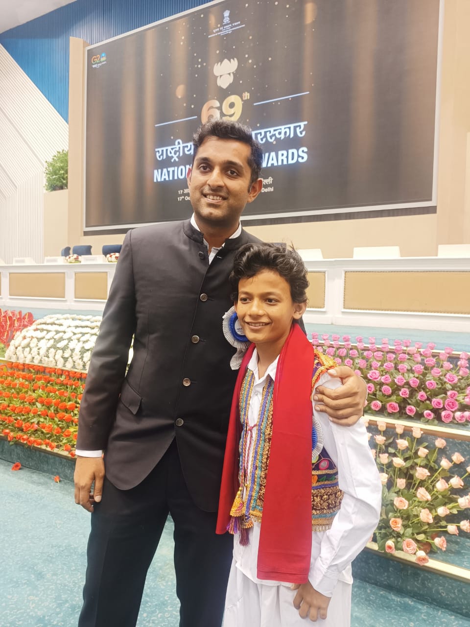 नई दिल्ली- 17 अक्टूबर। गुजराती फिल्म छेलो शो फिल्म में बाल कलाकार की भूमिका निभाने वाले भाविन रबारी को 69वें राष्ट्रीय फिल्म पुरस्कार दिया गया। पुरस्कार को लेकर बेहद उत्साहित एवं खुश भाविन रबारी ने कहा कि वे अपने आदिवासी समाज के पहले लड़के हैं जिसने न केवल फिल्म देखने का सपना पूरा किया बल्कि फिल्मों में काम भी किया।