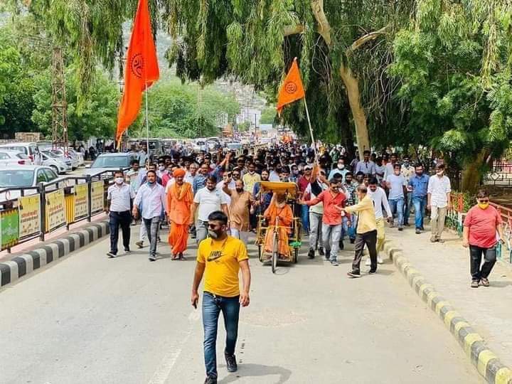 7 अगस्त : जालौर जिले की वीर वीरमदेव दुर्ग की वीरम चौकी पर लगी भगवा ध्वज को कुछ अराजक एवं उपद्रवियों द्वारा तोड़ा गया जिसके खिलाफ हिंदू संगठन व हिंदू समाज जालौर के नेतृत्व में जिला कलेक्टर को ज्ञापन सौंपा गया इससे पहले समस्त धर्म हिंदू संगठन व समाज ने लोगों को एकत्रित होने के लिए कहा गया शुक्रवार को 10:30 मलकेस्वर मठ , जालोर क्लब के पीछे पधारे से रैली निकाली रैली आगे की ओर हॉस्पिटल चौराहे होते हुए जिला कलेक्टर ऑफिस तक पहुंची जहां पर हिंदू संगठन व हिंदू समाज के प्रबुद्ध लोगों ने अपना ज्ञापन जिला कलेक्टर को सौंपा