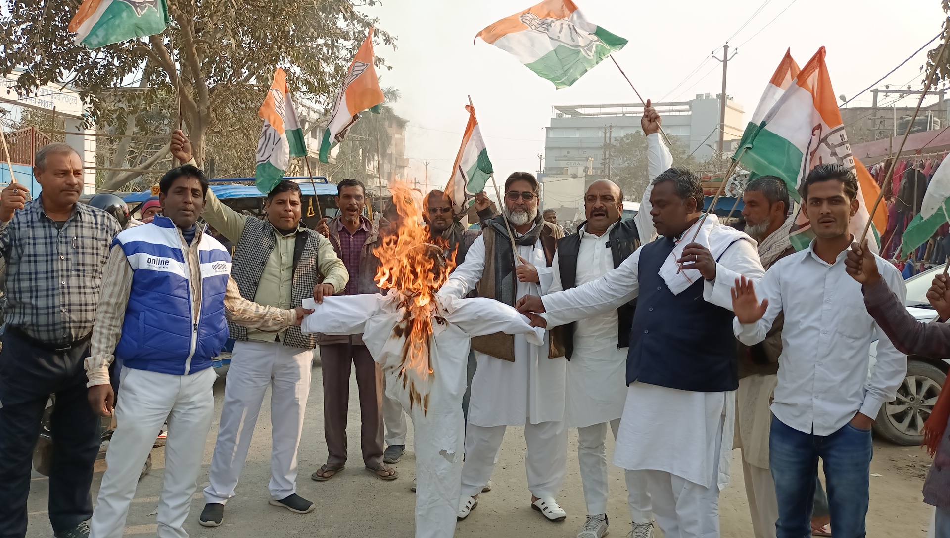 डीएपी की किल्लत एवं कालाबाजारी के खिलाफ कांग्रेस ने कृषि मंत्री का पुतला फुंका