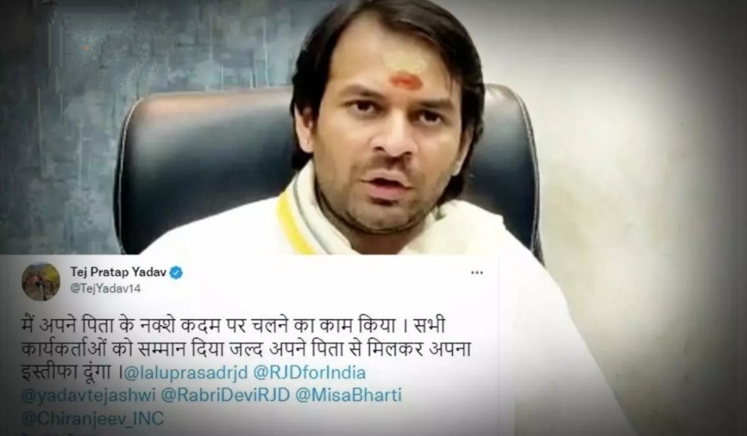 तेज प्रताप यादव ने ट्वीट कर लिखा, ”मैंने अपने पिता के नक्शे कदम पर चलने का काम किया। सभी कार्यकर्ताओं को सम्मान दिया, जल्द ही अपने पिता से मिलकर अपना इस्तीफा दूंगा।”