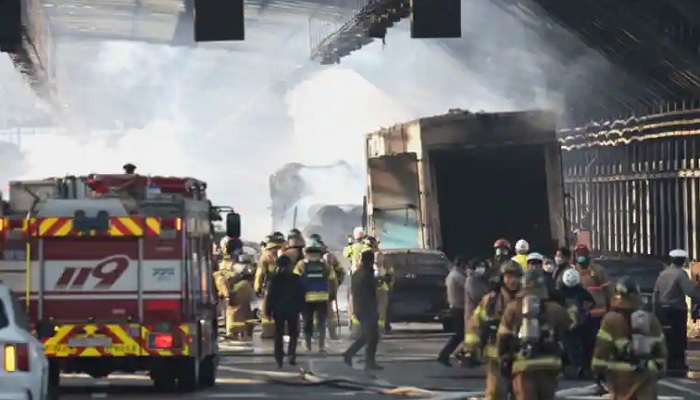सियोल- 29 दिसम्बर। राजधानी सियोल सिटी के बाहरी इलाके में दक्षिण कोरियाई एक्सप्रेस-वे सुरंग में एक बस और ट्रक की टक्कर में पांच लोगों की मौत हो गई और कई अन्य घायल हो गए।