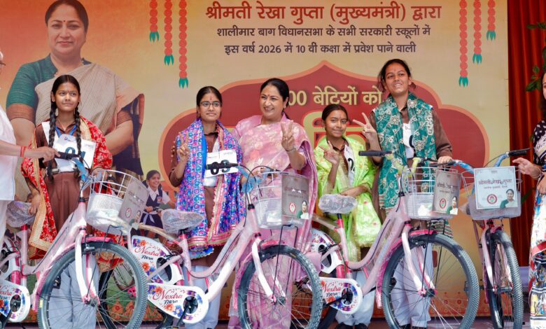 दिल्ली की CM रेखा गुप्ता  ने 10वीं में प्रवेश लेने वाली 1100 छात्राओं को साइकिल वितरित की