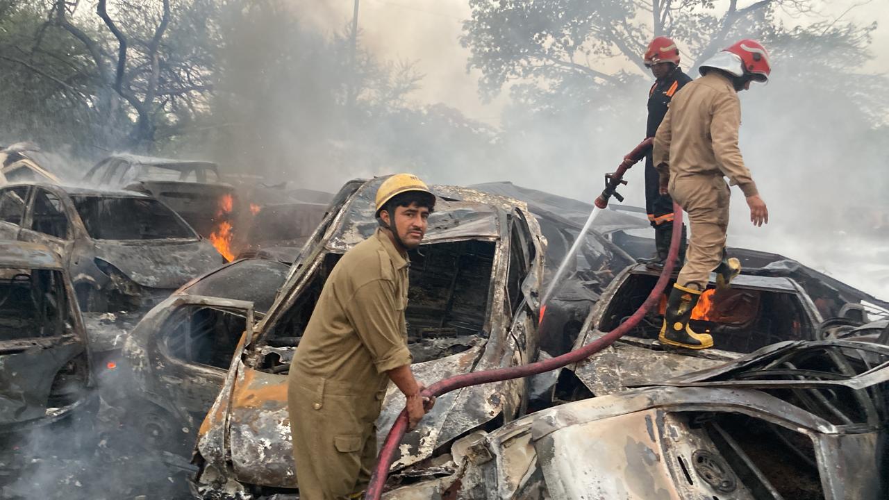 दिल्ली में कार स्क्रैप गोदाम में लगी भीषण आग