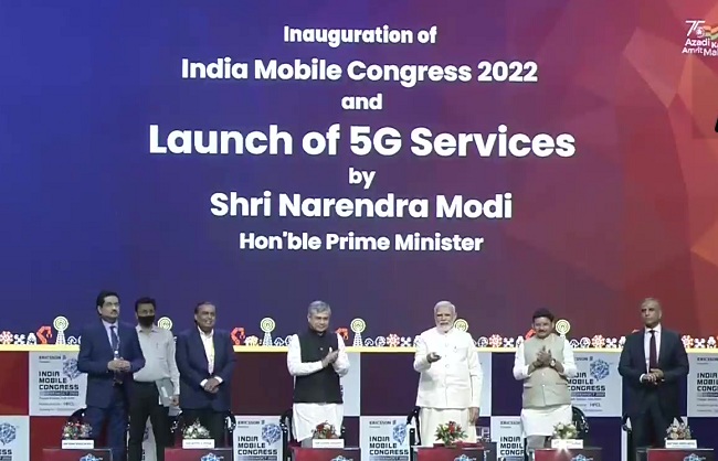 नई दिल्ली- 01 अक्टूबर। प्रधानमंत्री नरेन्द्र मोदी ने शनिवार पूर्वाह्न करीब 11ः35 बजे यहां प्रगति मैदान में 5जी सेवा लॉन्च की। इसी के साथ भारत संचार क्रांति में बड़ी छलांग लगाते हुए टेक्नोलॉजी के नए युग में प्रवेश कर गया। प्रधानमंत्री के इंडिया मोबाइल कांग्रेस 2022 के छठे संस्करण के उद्घाटन पर हुई इस लॉन्चिंग से समारोह स्थल तालियों से गूंज उठा।