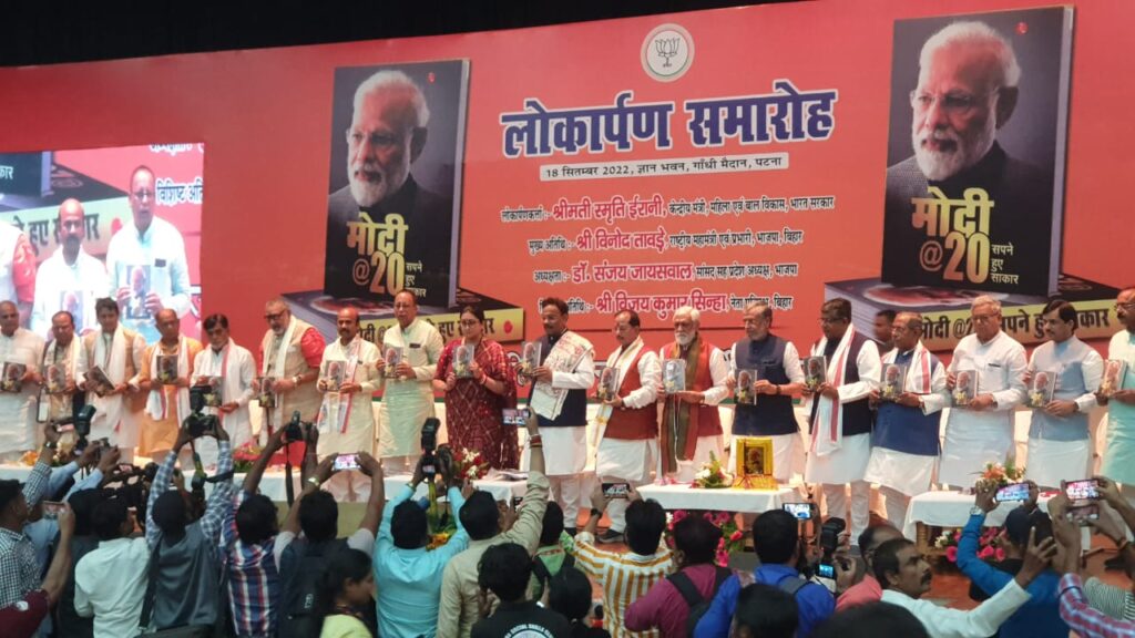 इससे पहले बिहार भाजपा प्रभारी विनोद तावड़े ने कहा कि स्मृति ईरानी मेरी बड़ी बहन है, जिन्होंने राहुल गांधी को हराया है। उनकी अंगुली पकड़कर मैं आया हूं तो कुछ भी कर सकता हूं। जब बिहार में नरेन्द्र मोदी आए थे और उनकी सभा में बम के धमाके हुए थे। बिहार की जनता ने उनको प्रधानमंत्री बनाया। उस समय भी हालत खराब थे। अब भी हालत खराब है। बेगूसराय में क्या हो रहा है,यह पूरा प्रदेश देख रहा है। संगठन में मंत्री, विधायक बनाना बड़ी बात नहीं, संगठन को मजबूत करना बड़ी बात है। उन्होंने कहा- बिहार के युवाओं को किताब पढ़ना चाहिए। ये आईएएस और आईपीएस की धरती है। उनको ये किताब पढ़नी चाहिए, मोदीजी के बारे जानने का ये बहुत बढ़िया माध्यम है।
