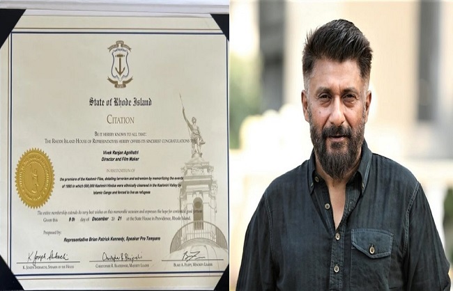 ‘द कश्मीर फाइल्स’ के निर्देशक को अमेरिका के राज्य रोड आइलैंड ने किया सम्मानित