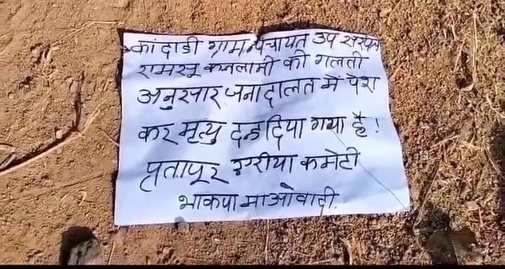 नक्सलियों ने एक पर्चे में कंदाड़ी के उपसरपंच रामसू कचलामी पर एक व्यक्ति की नक्सलियों के नाम पर हत्या करना, पुलिस की मुखबिरी करना, आत्मसमर्पण करवाना, सरकारी योजनाओं पर अमल करने के आरोप में जनअदालत में मृत्यु दंड देने की जिक्र किया है। नक्सली उत्पात और बैनर पोस्टर लगाये जाने के बाद स्वरूपनगर एवं बुरखा गांव तथा आस-पास के गांवों में दहशत का माहौल बना हुआ है। सड़क काट देने एवं टेलीफोन टाॅवर जला देने से इलाके के लोगों को परेशानियों का सामना करना पड़ रहा है। ग्रामीणों ने बताया कि गुरुवार रात को जबरदस्त धमाकों की आवाज भी सुनाई दिया है।