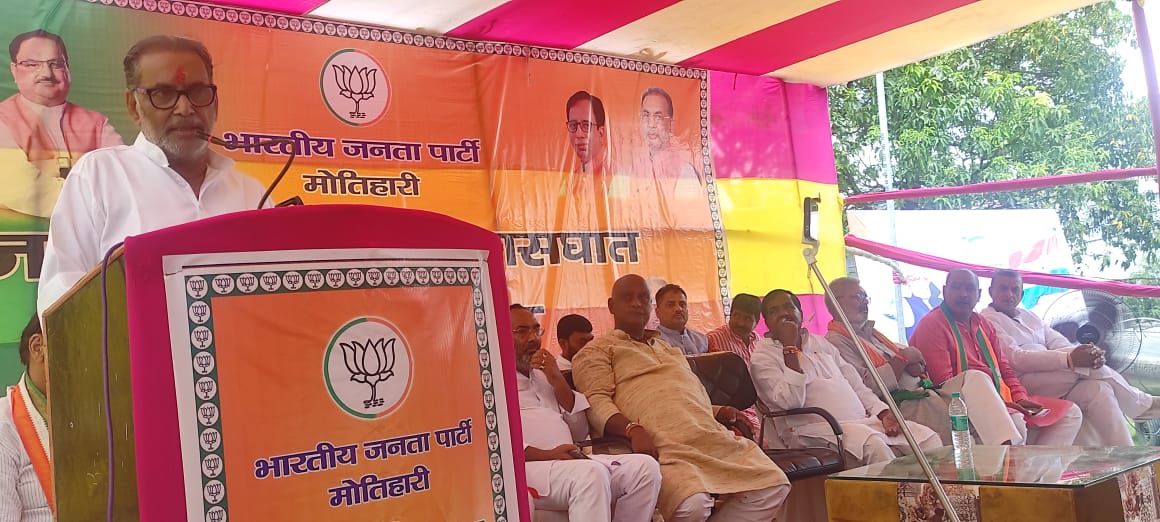 मोतिहारी- 12अगस्त। जिला भाजपा द्वारा शुक्रवार को स्थानीय चरखा पार्क मे जनादेश से विश्वासघात के विरोध में धरना दिया गया। धरना को संबोधित करते हुए सांसद सह पूर्व केंद्रीय मंत्री राधा मोहन सिंह ने कहा कि सार्वभौमिक विकास के लिए बने जनोन्मुखी एनडीए गठबंधन को तोड़कर नीतीश कुमार ने बिहार के 12 करोड़ लोगों को एक बार फिर धोखा दिया है।