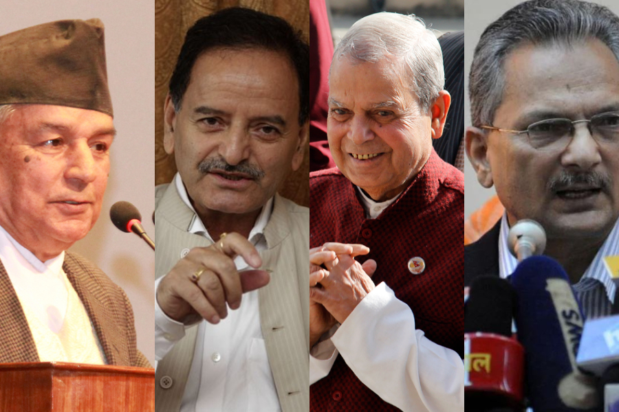 राष्ट्रपति पद की दौड़ में पूर्व प्रधानमंत्री बाबूराम भट्टराई भी हैं। हालांकि उनके नाम पर कोई सहमति नहीं बन पाई है। पूर्व मुख्य न्यायाधीश खिलराज रेग्मी, प्रोफेसर लोकराज बराल, वकील शंभू थापा और अन्य जो राजनीतिक दल से बाहर हैं, वे भी आकांक्षी हैं। रेग्मी ने अतीत में चुनावी सरकार का नेतृत्व भी किया है।