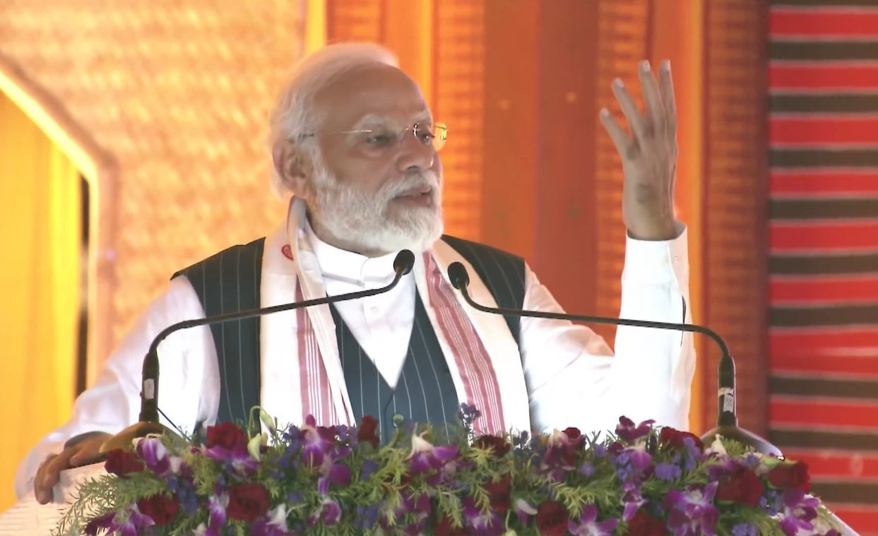 प्रधानमंत्री शुक्रवार को गुवाहाटी के सरसजई स्टेडियम में आयोजित कार्यक्रम में 10,900 करोड़ रुपये से अधिक लागत की विभिन्न परियोजनाओं का उद्घाटन और शिलान्यास करने के बाद संबोधित कर रहे थे। यहां उन्होंने दस हजार से अधिक कलाकारों-बिहू नर्तकों द्वारा प्रस्तुत रंगारंग बिहू कार्यक्रम का भी अवलोकन किया। कार्यक्रम के दौरान, प्रधानमंत्री ने नामरूप में 500 टीपीडी क्षमता वाले मेन्थॉल संयंत्र की शुरुआत; ब्रह्मपुत्र नदी पर पलाशबाड़ी और सुआलकुची को जोड़ने वाले एक पुल का शिलान्यास; शिवसागर स्थित रंग घर के सौंदर्यीकरण कार्य का शिलान्यास और पांच रेल परियोजनाओं को राष्ट्र को समर्पित करने सहित विभिन्न विकास परियोजनाओं का शिलान्यास तथा राष्ट्र को समर्पित किया।