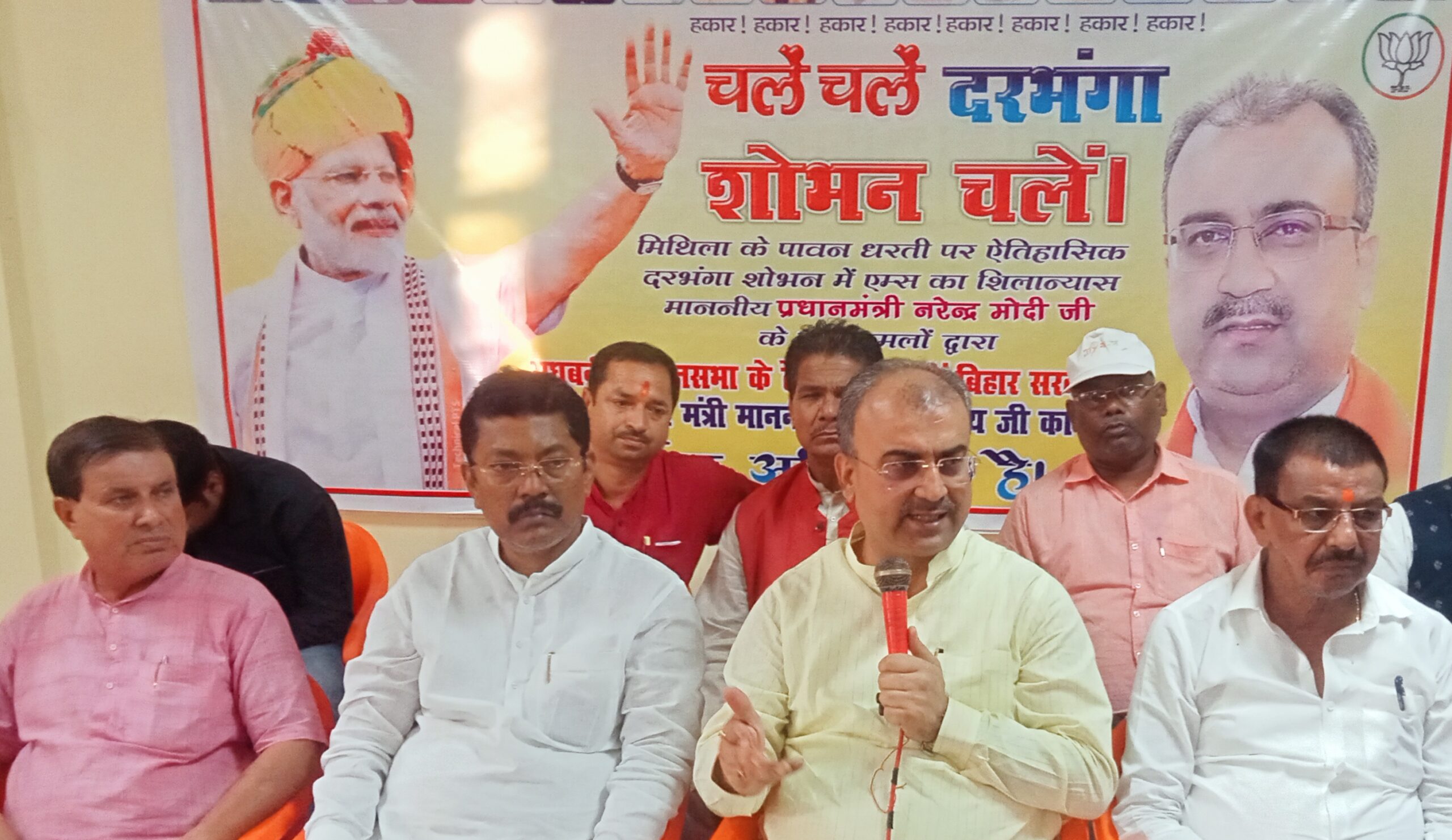 मधुबनी- 10 नवंबर। रविवार को भाजपा जिला कार्यालय में संवाददाता सम्मेलन का आयोजन किया गया। जिसे संबोधित करते हुए स्वास्थ्य मंत्री मंगल पांडे ने कहा कि आगामी 13 नवंबर को दरभंगा में एम्स का निर्माण होने जा रहा है। जिसकी भूमि पूजन प्रधानमंत्री नरेंद्र मोदी एवं मुख्यमंत्री नीतीश कुमार करेंगे। इसके अलावा इस भूमि पूजन में कई मंत्री शामिल होंगे। उन्होंने बताया कि बिहार के लोगों के लिए बहुत बड़ी सौगात प्रधानमंत्री नरेन्द्र मोदी एवं मुख्यमंत्री नीतीश कुमार देने का कार्य करने जा रहे है। प्रधानमंत्री और मुख्यमंत्री के मिथिला के विकास के लिए हर संभव प्रयास कर रहे हैं। बिहार के अंदर एक एम्स पहले निर्माण हो चुका है। तथा दूसरा एम्स मिथिला क्षेत्र के दरभंगा में होने जा रहा है। एम्स का निर्माण 1700 करोड़ रुपए की लागत से होगा। एम्स निर्माण हो जाने से अब लोगों को इलाज में सहूलियत होगी। एम्स के अंदर स्वस्थ्स्य से संबंधित तमाम प्रकार की सुविधा रहेगी। गरीब गुरबा को जरा भी परेशानी नहीं होगी। मिथिला के लोगों के लिए बहुत बड़ी सौगात है। मौके पर सांसद अशोक यादव,जिलाध्यक्ष शंकर झा,मेयर अरुण राय,मनोज कुमार मुन्ना,बद्री राय के अलावा अन्य कार्यकर्ता शामिल थे।