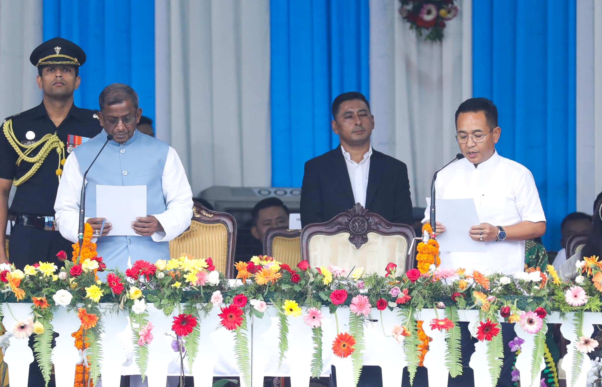 गंगटोक- 10 जून। सिक्किम क्रांतिकारी मोर्चा (एसकेएम) पार्टी के अध्यक्ष प्रेम सिंह तमांग ने दूसरी बार मुख्यमंत्री पद की शपथ ली है। तमांग ने सोमवार को राजधानी गंगटोक के पालजोर स्टेडियम में आयोजित एक भव्य शपथ ग्रहण समारोह में कैबिनेट के 11 सदस्यों के साथ पद और गोपनीयता की शपथ ली।