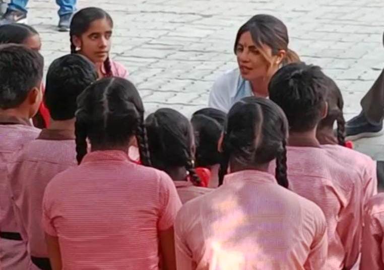 फिल्म अभिनेत्री यूनिसेफ एम्बेस्डर प्रियंका चोपड़ा प्राथमिक विद्यालयों के बच्चों से मिलीं