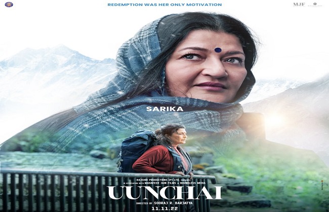 पारिवारिक फ़िल्में बनाने के लिए मशहूर राजश्री प्रोडक्शन की आगामी फिल्म ‘ऊंचाई’ इन दिनों चर्चा में है। दोस्ती के रिश्ते पर आधारित इस फिल्म में बॉलीवुड एक्ट्रेस परिणीति चोपड़ा के अलावा बॉलीवुड के महानायक अमिताभ बच्चन, अनुपम खेर, बोमन ईरानी, डैनी डेन्जोंगपा, नफीसा अली सोढी, नीना गुप्ता और सारिका भी फिल्म में अहम भूमिका में नजर आएंगी। शुक्रवार को मेकर्स ने फिल्म से अभिनेत्री सारिका का फर्स्ट लुक पोस्टर जारी किया है।