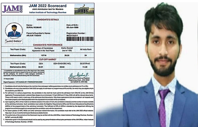 नवादा- 24 मार्च। बिहार में नवादा मंडल कारा में बंद सूरज कुमार ने आईआईटी की संयुक्त एडमिशन टेस्ट फॉर मास्टर्स की परीक्षा में बड़ी सफलता हासिल की है। सूरज ने जैम की परीक्षा में पूरे भारत में 54वां रैंक हासिल किया है। सूरज अब आईआईटी रुड़की में दाखिला लेकर मास्टर डिग्री का कोर्स करेगा। यह एक एंट्रेंस एग्जाम होता है, जिसके माध्यम से दो वर्षीय एमएससी प्रोग्राम कोर्स में दाखिला मिलता है।