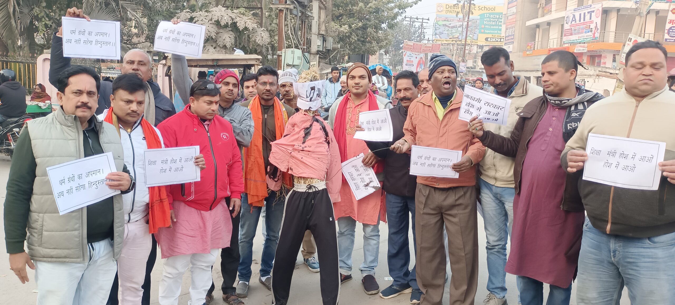 बिहार के शिक्षा मंत्री के बयान पर बवाल,मधुबनी में भाजपा कार्यकर्ताओं ने फुंका पुतला, संजय पांडे ने कहा- शिक्षा मंत्री ने हिन्दू भावनाओं को ठेस पहुंचाया