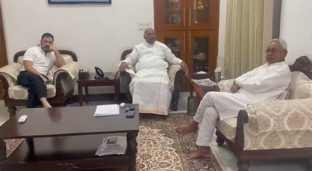 बिहार के मुख्यमंत्री नीतीश कुमार आज मलिकार्जुन खड़गे से उनके आवास पर मिले। इस दौरान कांग्रेस नेता राहुल गांधी भी उपस्थित रहे। मुलाकात के बाद कांग्रेस के महासचिव केसी वेणुगोपाल ने कहा कि विपक्षी पार्टियों की बैठक को लेकर हमारे बीच एक विस्तृत चर्चा हुई। बैठक की तारीख और स्थान अगले एक-दो दिन में तय किया जाएगा।