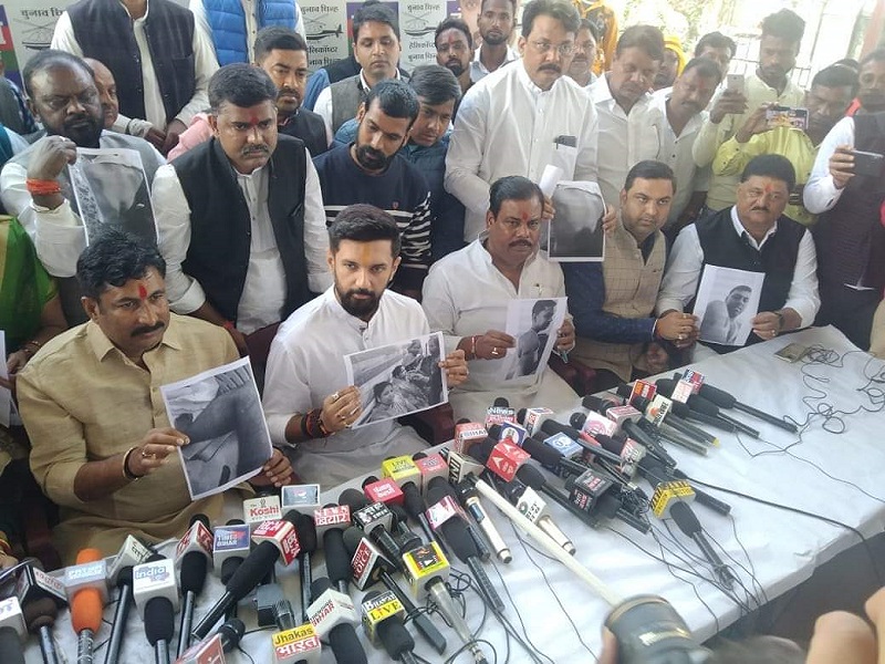 चिराग ने कहा कि जब शांतिपूर्ण तरीके से पार्टी का राजभवन मार्च चल रहा था तो सवाल यह है कि मेरे कार्यकर्ताओं पर कल लाठी क्यों चली? नीतीश कुमार को इसका जवाब देना होगा। सांसद ने आरोप लगाते हुए कहा कि पुलिस ने महिला कार्यकर्ता के गाल पर मारा। पार्टी के युवा नेता को ऐसा मारा कि उसकी रीढ़ की हड्डी में फ्रैक्चर हो गया है। पार्टी के एक-एक कार्यकर्ता को तीन-तीन पुलिस वालों ने घेर कर मारा। कार्यकर्ताओं को दौड़ा-दौड़ाकर मारा गया। इस पर चिराग ने पूछा कि ऐसा क्यों किया गया? क्या हम आतंकी-उपद्रवी हैं? चिराग ने सवाल कोतवाली थाना में दर्ज हुए एफआईआर और उसमें लगाई गई आईपीसी की धाराओं पर भी उठाया।