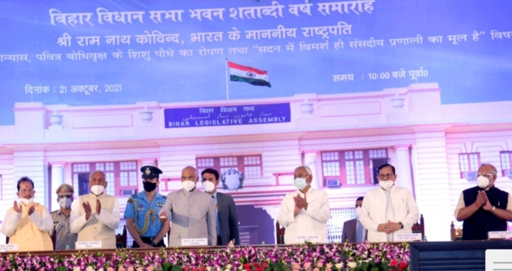 मुख्यमंत्री नीतीश कुमार ने कहा कि आज बिहार विधानसभा भवन के 100 साल पूरा होने के उपलक्ष्य में एक विशेष कार्यक्रम का आयोजन किया गया है। इस अवसर पर राष्ट्रपति ने समय दिया, इसके लिए उन्हें हृदय से धन्यवाद देता हूं। उनका रिश्ता यहां से काफी पुराना रहा है। राष्ट्रपति हमारे यहां बिहार में करीब दो साल के लिए राज्यपाल रहे थे। यहीं से इन्हें राष्ट्रपति बनने का मौका मिला । हम तो कहते हैं कि ये बिहारी राष्ट्रपति हैं। ये तो सीधे बिहार के राज्यपाल से राष्ट्रपति बने। हमलोगों को बेहद खुशी होती है। राष्ट्रपति कोविन्द अब तक 4 बार बिहार आ चुके हैं। सीएम नीतीश ने कहा कि पटना में विपश्यना केंद्र बनवाया है। राष्ट्रपति कल वहां जायेंगे। यह जानकर काफी खुशी हुई है। अब बिहार के सभी सरकारी अधिकारी-कर्मी भी विपश्यना केंद्र जायें। इस केंद्र पर जाने वाले सरकारी कर्मियों को सरकार 15 दिनों की छुट्टी देगी। मुख्यमंत्री ने विधानसभा अध्यक्ष से कहा कि हम तो चाहेंगे प्रधानमंत्री को बुलाया जाए और उनका कार्यक्रम हो। विधानसभा अध्यक्ष इस काम में लगे हुए हैं।सीएम ने कहा कि राष्ट्रपति रामनाथ कोविन्द एक ऐसे व्यक्ति हैं जो सीधे राज्यपाल से राष्ट्रपति बने। नीतीश कुमार ने कहा कि राष्ट्रपति पूरे देश के हैं लेकिन हम सब इनको बिहारी ही मानते हैं।मुख्यमंत्री नीतीश कुमार ने कहा कि राष्ट्रपति रामनाथ कोविन्द का जो लगाव बिहार से रहा है। यही वजह है कि वह बिहार आने का कोई भी अवसर नहीं छोड़ते। मुख्यमंत्री ने कहा कि आज बिहार विधान सभा भवन के 100 साल पूरा होने पर एक विशेष कार्यक्रम का आयोजन किया गया है इसके लिए विधानसभा के अध्यक्ष विजय कुमार सिन्हा को धन्यवाद देते हैं। आदरणीय राष्ट्रपति महोदय ने इसके लिए जो समय दिया, सब लोगों के अनुरोध को स्वीकार किया उसके लिये मैं उन्हें हृदय से धन्यवाद देता हूं और अभिनंदन करता हूं। मुख्यमंत्री ने कहा कि राष्ट्रपति बनने के बाद ये पहली बार तीसरा कृषि रोडमैप की शुरुआत करने के लिए 9 नवंबर 2017 को बिहार आए थे। इसके बाद 15 नवंबर 2018 को डॉ. राजेंद्र प्रसाद केंद्रीय कृषि विश्वविद्यालय के दीक्षांत समारोह में आए थे। 25 अक्टूबर 2019 को विश्व शांति स्तूप, राजगीर के 50 वें वार्षिकोत्सव में हमारे विशेष आग्रह पर ये यहां पधारे थे। उन्होंने कहा कि जापान के फूजी गुरु जी ने विश्व शांति स्तूप का निर्माण कराया था। इस अवसर पर उप मुख्यमंत्री तारकिशोर प्रसाद,उप मुख्यमंत्री रेणु देवी,संसदीय कार्य मंत्री विजय कुमार चौधरी,राज्य सरकार के अन्य मंत्रीगण, सांसदगण,विधायकगण, विधान पार्षदगण, पूर्व सांसदगण,पूर्व विधायकगण,पूर्व विधान पार्षदगण सहित अन्य जनप्रतिनिधिगण, सहित अन्य अधिकारीगण एवं अन्य गणमान्य व्यक्ति उपस्थित थे।