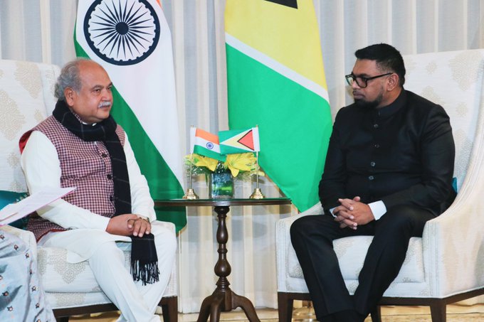 तोमर ने कहा कि भारत और गुयाना के बीच कृषि से संबंधित विभिन्न विषयों पर विचारों और सुझावों का आदान-प्रदान हुआ। गुयाना के राष्ट्रपति के साथ उन्होंने आज कृषि के मुद्दों पर सार्थक चर्चा की है।