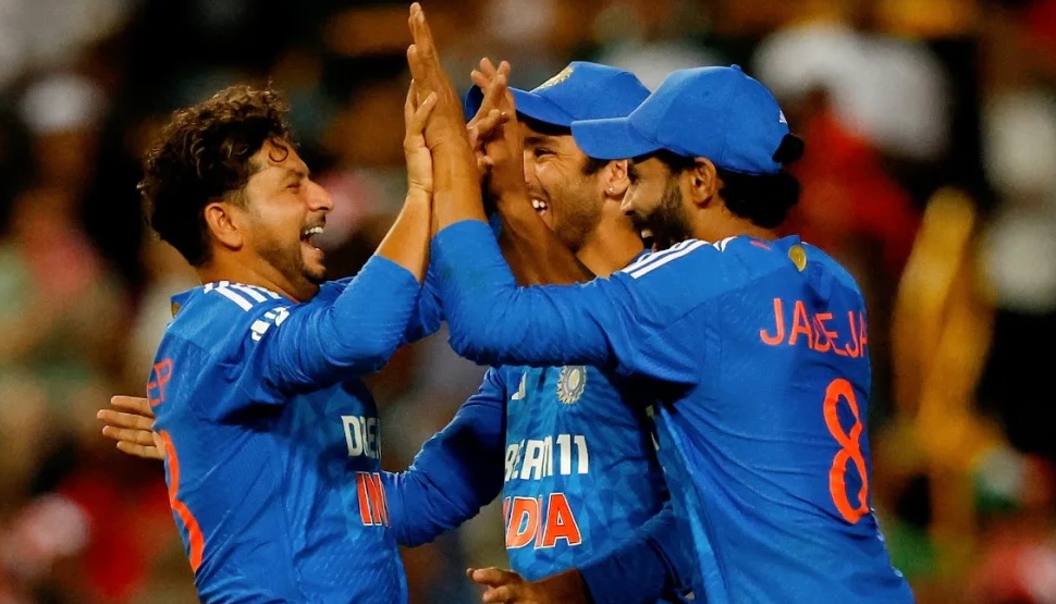 भारत की ओर से मिले 202 रन के लक्ष्य का पीछा करने उतरी दक्षिण अफ्रीकी टीम शुरू से ही विशाल टारगेट के दबाव में नजर आई। तेज गति से रन बनाने के चक्कर में मेजबान टीम थोड़े-थोड़े अंतराल पर विकेट खोती रही और आखिर में 14वें ओवर में पूरी टीम 95 रन पर सिमट गई। दक्षिण अफ्रीका के लिए डेविड मिलर ने 35 रन, कप्तान एडन मारक्रम ने 25 रन और डेविड फेरिरा ने 12 रन की पारी खेली। इन तीनों के अलावा कोई भी बल्लेबाजी दहाई का आंकड़ा पार नहीं सक सका। वहीं भारत के लिए कुलदीप यादव और रविंद्र जडेजा की स्पिनर जोड़ी ने सात विकेट चटकाए। कुलदीप को पांच और जडेजा को दो सफलता मिली। वहीं मुकेश कुमार और अर्शदीप सिंह ने एक-एक विकेट झटके।
