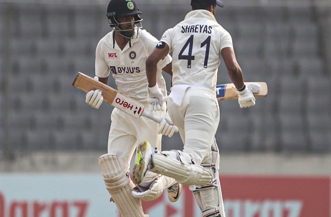 मीरपुर (बांग्लादेश)- 25 दिसंबर। भारतीय टीम ने बांग्लादेश को दो टेस्ट मैचों की सीरीज के दूसरे मैच में रविवार को तीन विकेट से हरा दिया। शेरे बांग्ला स्टेडियम में खेले गए दूसरे मुकाबले में भारत को 145 रनों का लक्ष्य मिला था। जवाब में खेल के चौथे दिन श्रेयस अय्यर और रविचंद्रन अश्विन ने बेहतरीन पारी खेल कर भारत को तीन विकेट से जीत दिला दी। अय्यर ने नाबाद 29 रन और अश्विन ने नाबाद 42 रन बनाए। इसी के साथ भारत ने दो मैचों की सीरीज को 2-0 से अपने नाम कर लिया। भारत ने चटगांव में खेला गया पहला टेस्ट मैच 188 रन से जीता था।