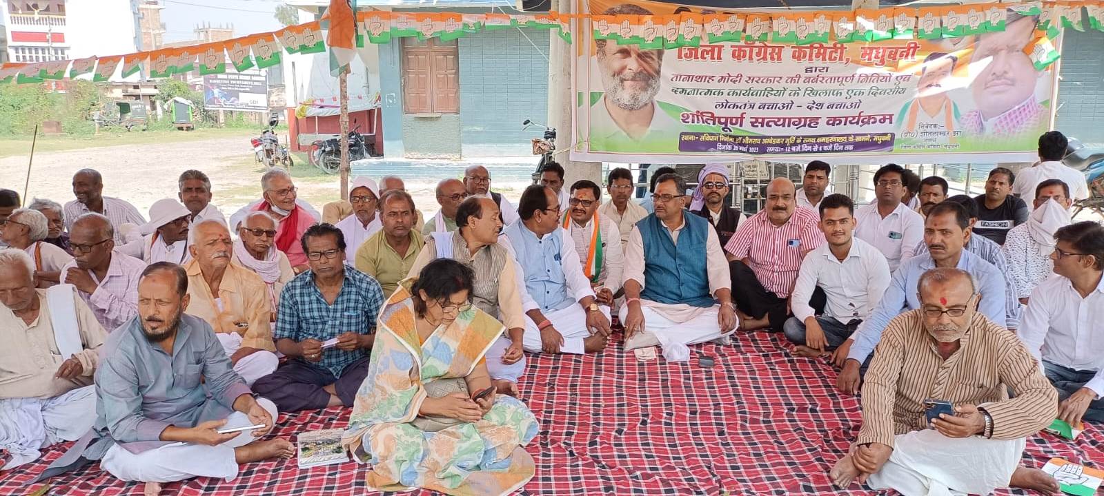 मधुबनी- 26 मार्च। जिला कांग्रेस कमिटी मधुबनी के द्वारा कांग्रेस पार्टी के पूर्व राष्ट्रीय अध्यक्ष,छात्रों, नौजवानों, किसानों एवं मजदूरों के मुखर आवाज राहुल गांधी की लोकसभा सदस्यता रद्द किए जाने,मोदी सरकार के दमनात्मक कार्यवाहियों,बर्बरतापूर्ण नीतियों एवं देश बचाओ-संविधान बचाओ कार्यक्रम के तहत जिलाध्यक्ष प्रो. शीतलाम्बर झा के अध्यक्षता में एक दिवसीय सत्याग्रह संविधान निर्माता डॉ भीमराव अंबेडकर मूर्ति के समक्ष किया गया। कार्यक्रम को सम्बोधित करते हुए प्रो. झा ने कहा कि आज देश में मोदी और अडानी की सरकार तानाशाही कर रही है। देश के सभी संवैधानिक संस्थाओं को पंगु बना दिया गया है। देश में लोकतंत्र पर खतरा बढ़ रहा है। जिस तरह आनन-फानन में मोदी सरकार के इशारों पर लोकसभा अध्यक्ष ने कांग्रेस नेता राहुल गांधी की सदस्यता रद्द की है। उससे यह साबित होता है कि देश के करोड़ों लोगों की गाढ़ी कमाई एसबीआई और एलआईसी में जमा था, उसे अडानी समूह में मोदी सरकार के इशारों पर निवेश कर लाखों करोड़ रुपये डूबा दिए गए है। जिसके खिलाफ राहुल गांधी ने संसद से लेकर संसद के बाहर लगातार मोदी सरकार पर हमलावर थे। जिससे भयाक्रांत होकर मोदी सरकार ने उनकी सदस्यता रद्द करवाई है। रहल गांधी के आवाज बन्द करने के उद्देश्य से क्योंकि उन्होंने महंगाई, भ्रष्टाचार, बेरोजगारी पर लगातार मोदी सरकार पर हमलावर रहे हैं। कांग्रेस पार्टी राष्ट्रपिता महात्मा गांधी के मूल सिद्धांत सत्य और अहिंसा के अपनाते हुए आज सत्याग्रह कर देश के हुक्मरान को चुनौती दी है कि अभिलम्ब मोदी अडानी महाघोटाले को संयुक्त संसदीय समिति से या सुप्रीम कोर्ट के मुख्य न्यायाधीश से जांच कराए, ताकि इस महाघोटाले से पर्दा उठे। लेकिन मोदी सरकार जांच नही करबाना चाहती है। क्योंकि मोदी को दाल में काला है। कांग्रेस के कार्यकर्ता तबतक चुप नही बैठेंगें, जबतक जांच न हो जाय। देश के लोगो को ध्यान भटकने के लिए साजिश कर राहुल गांधी को मुकदमा दर्ज कर सजा कार्रवाई की गई है। ताकि देश से लूटकर विदेश भागे आपने पूंजीपति मित्रों को बचाया जा सके। कार्यक्रम में ज्योति झा,रहिका प्रखंड अध्यक्ष मो.सनाउल्लाह, कांग्रेस युथ अध्यक्ष शाहिद हुसैन,मीनू पाठक,उपेन्द्र यादव,मनोज कुमार मिश्र,विजय कुमार राउत,प्रो. कृष्ण कुमार झा, अकील अंजुम,मो. सबीर,अब्दुल दैयाम हासिम, पवन कुमार यादव,सत्येन्द्र पासवान,ऋषिदेव सिंह,प्रो. मीनू पाठक,नित्यानंद झा,बालेश्वर पासवान,सुरेश चंद्र झा,कौशल किशोर चोधरी,आंनद कुमार झा, बिनोद कुमार झा,अशोक प्रसाद,रणधीर सेन,सुरेन्द्र मिश्रा,शकील अख्तर, शकील अहमद,मो.अजहर गुड्डू,अविनाश झा,मुकेश कुमार झा,श्रीराम मंडल,नबल किशोर झा,सुरेन्द्र महतो,मो. रेहान,मो. जैदी, आल