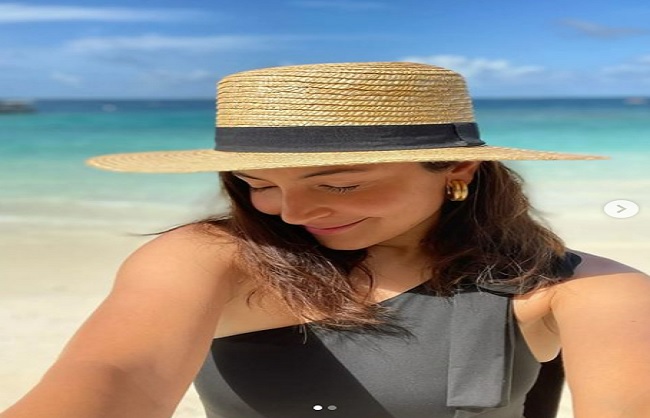 मालदीव से वेकेशन मना कर लौटी अनुष्का ने मांगकवार को अपने आधिकारिक इंस्टाग्राम पर अपनी दो तस्वीरें साझा की हैं ,जिनमें उन्होंने ब्लैक कलर की मोनोकिनी पहनी हुई है और राउंड हैट लगा रखा है। ब्लैक मोनोकिनी पहने अनुष्का शर्माते हुए पोज देती नजर आ रही हैं। यह तस्वीर समुद्र किनारे की है। दूसरी तस्वीर में भी वह काफी बोल्ड नजर आ रही हैं। मोनोकिनी में अनुष्का का फिगर कमाल का दिख रहा है। तस्वीर के साथ अनुष्का ने कैप्शन लिखा है, ‘जब सूरज ने मुझे शर्म से लाल कर दिया।’