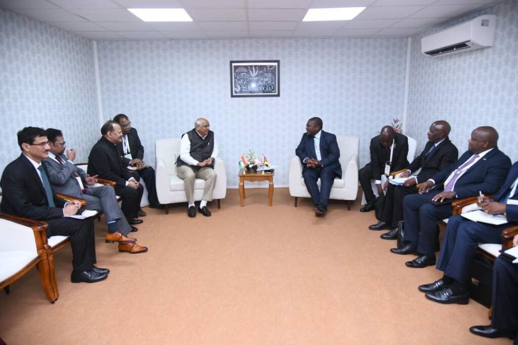 गांधीनगर- 09 जनवरी। मुख्यमंत्री भूपेंद्र पटेल ने गुजरात में वाइब्रेंट समिट के 10वें संस्करण में मोजाम्बिक प्रतिनिधिमंडल के साथ हिस्सा लेने आए मोजाम्बिक के राष्ट्रपति फिलिप जैसिंटो न्यूसी से मंगलवार को महात्मा मंदिर में मुलाकात की। फिलिप जैसिंटो न्यूसी ने भारतीय प्रबंध संस्थान (आईआईएम) अहमदाबाद में अपने पढ़ाई के दिनों की याद ताजा करते हुए गुजरात को अपना ‘दूसरा घर’ बताया। उन्होंने बताया कि वर्तमान प्रधानमंत्री नरेन्द्र मोदी जब गुजरात के मुख्यमंत्री थे, तव वे अहमदाबाद में ही रहते थे और उनके नेतृत्व में हुए गुजरात के सर्वांगीण विकास के शुरुआती दौर के वे साक्षी रहे हैं।