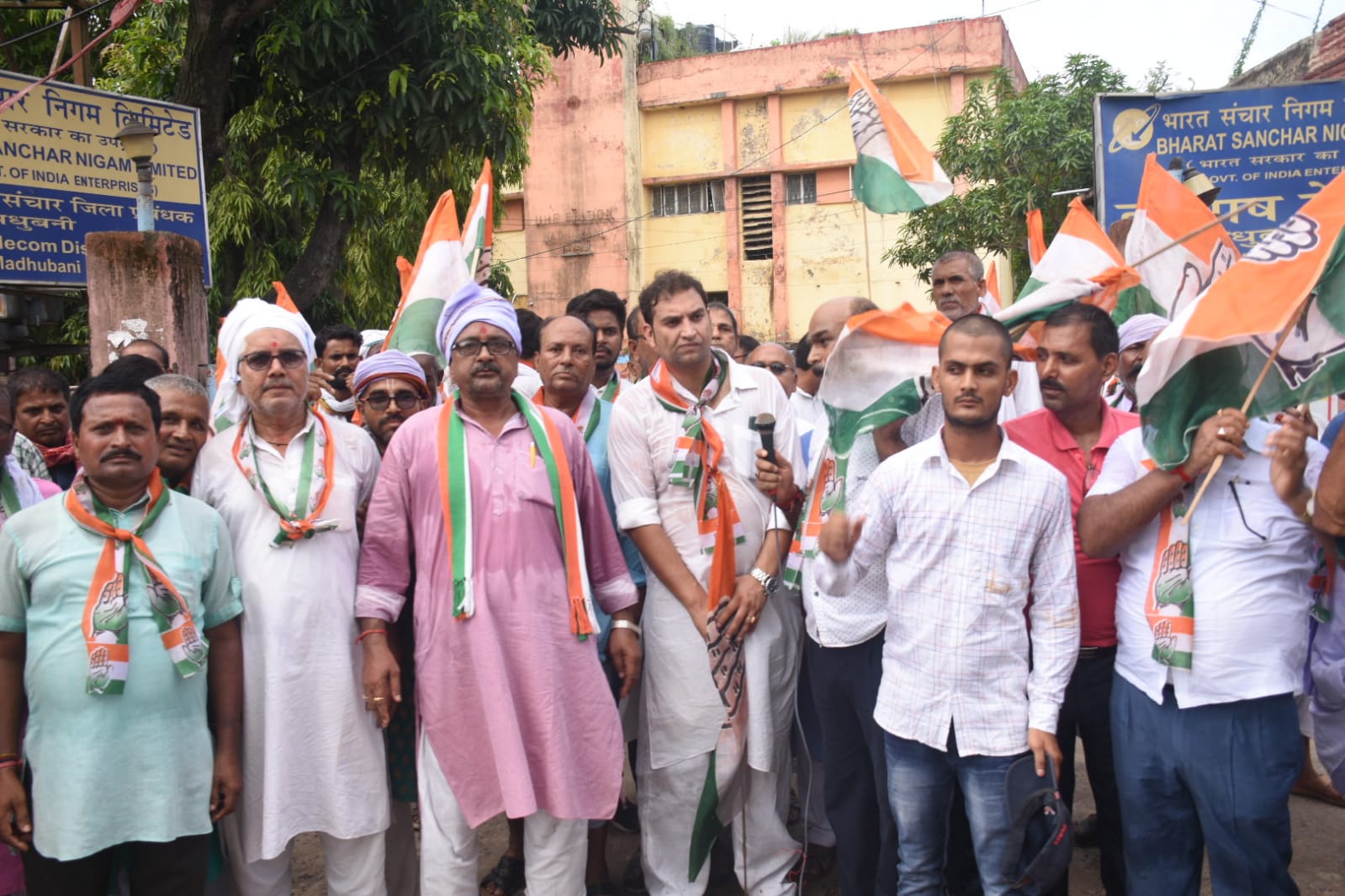 मधुबनी-22 जुलाई। जिला कांग्रेस कमिटी मधुबनी के जिलाध्यक्ष प्रो. शीतलाम्बर झा के नेतृत्व में काफी संख्याओं में नेताओं एवं कार्यकर्ताओं ने मोदी सरकार के इशारों पर केन्द्रीय एजेंसीयों के दुरुपयोग के खिलाफ शहर के विभिन्न मार्गों से प्रतिरोध मार्च कर केंद्र सरकार के कार्यालय बीएसएनएल का जोरदार घण्टों घेराव कर प्रदर्शन किया। तथा मोदी सरकार के खिलाफ कांग्रेस कार्यकर्ताओं ने नारेबाजी किया। कार्यक्रम को सम्बोधित करते हुए जिलाध्यक्ष प्रा. झा ने कहा मोदी एवं अमित शाह की सरकार देश के ज्वलंत मुद्दों कमरतोड़ महंगाई, बढ़ती बेरोजगारी, देश की घटती अर्थव्यवस्था एवं देश की सिकुड़ती सीमाओं से ध्यान भटकाने के लिए केंद्रीय एजेंसी ईडी के माध्यम से कांग्रेस पार्टी के शीर्ष नेतृत्व सोनिया गांधी एवं राहुल गांधी को अपमानित, प्रताड़ित एवं बदनाम करने के लिए पिछले महीनों से ही लगातार नेशनल हेराल्ड मामले में पूछताछ कर रही है, तब जबकि न कोई कोर्ट का वारंट है न ही कोई केश है लंबित है, बल्कि मोदी सरकार में ही 2015 में ही कोर्ट ने इस मामले को बन्द कर दिया था। उसको फिर से जगाने के लिए मोदी सरकार खड़यंत्र कर रही है।