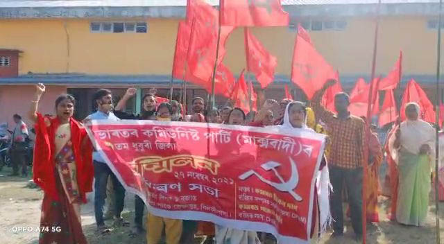 धुबरी (असम), 27 नवम्बर। धुबरी जिला के बिलासीपारा में सीपीआईएम के कार्यकर्ताओं द्वारा मूल्य वृद्धि सहित अन्य कई मुद्दों को लेकर शनिवार को एक विरोध रैली निकाली गयी।