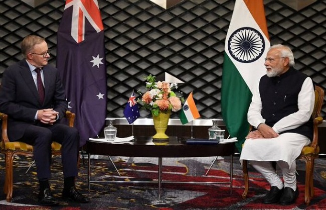 जापान की राजधानी टोक्यो में क्वॉड शिखर सम्मेलन में भाग लेने के लिए पहुंचे भारत के प्रधानमंत्री नरेन्द्र मोदी और ऑस्ट्रेलिया के नए प्रधानमंत्री एंथनी अल्बानीज के क्वॉड शिखर सम्मेलन से इतर द्विपक्षीय वार्ता हुई। दोनों नेताओं ने हिंद प्रशांत क्षेत्र में समन्वय बढ़ाने पर जोर दिया। दोनों देशों के बीच व्यापार में वृद्धि पर चर्चा हुई और तय हुआ कि इस दिशा में आ रही बाधाएं दूर की जाएंगी। ऊर्जा क्षेत्र में भी सहयोग बढ़ाने का फैसला हुआ। तय हुआ कि दोनों देश समग्र आर्थिक सहयोग बढ़ाकर रिश्ते मजबूत करेंगे। बाद में अल्बानीज ने कहा कि भारत के साथ ऑस्ट्रेलिया के रिश्ते बेहद महत्वपूर्ण हैं। उन्होंने प्रधानमंत्री नरेन्द्र मोदी के साथ अपनी मुलाकात को अपने लिए एक बड़ा सम्मान करार दिया।