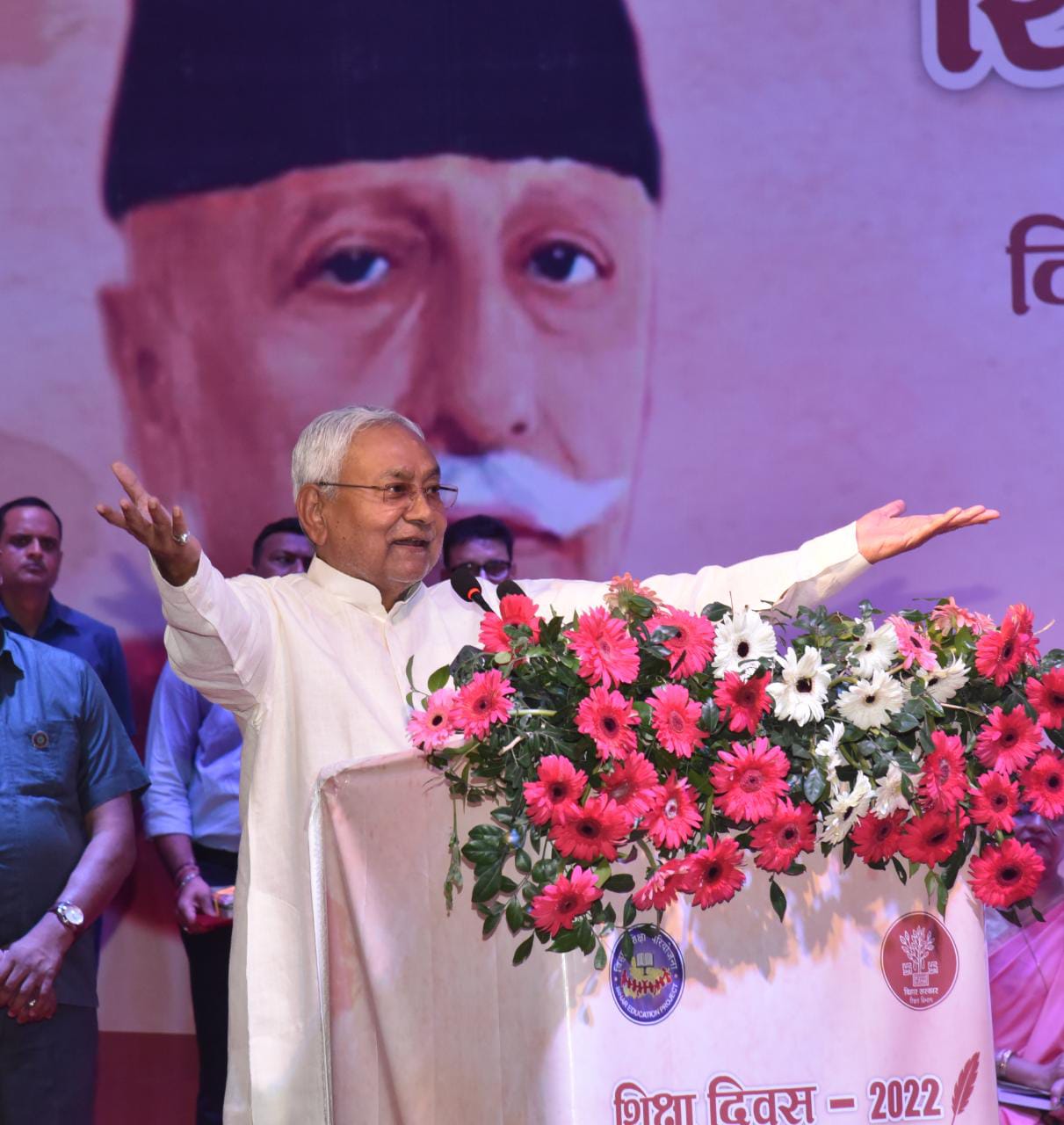 उन्होंने कहा कि हम तो एक पिछड़ा राज्य हैं लेकिन राज्य में विकास के कई काम किए जा रहे हैं। हर घर तक पक्की गली नाली का निर्माण, शौचालय का निर्माण, हर घर नल का जल पहुंचाने का काम किया गया। हम आप शिक्षकों से कहेंगे कि आप लोग स्कूल जायें और बच्चों को ठीक से पढ़ायें। जो शिक्षक स्कूल में नहीं पढ़ाते हैं उन पर कार्रवाई करें। अभी सबसे अधिक खर्च शिक्षा पर किया जा रहा है। बजट का 21 प्रतिशत तक पढ़ाई पर खर्च हो रहा है।