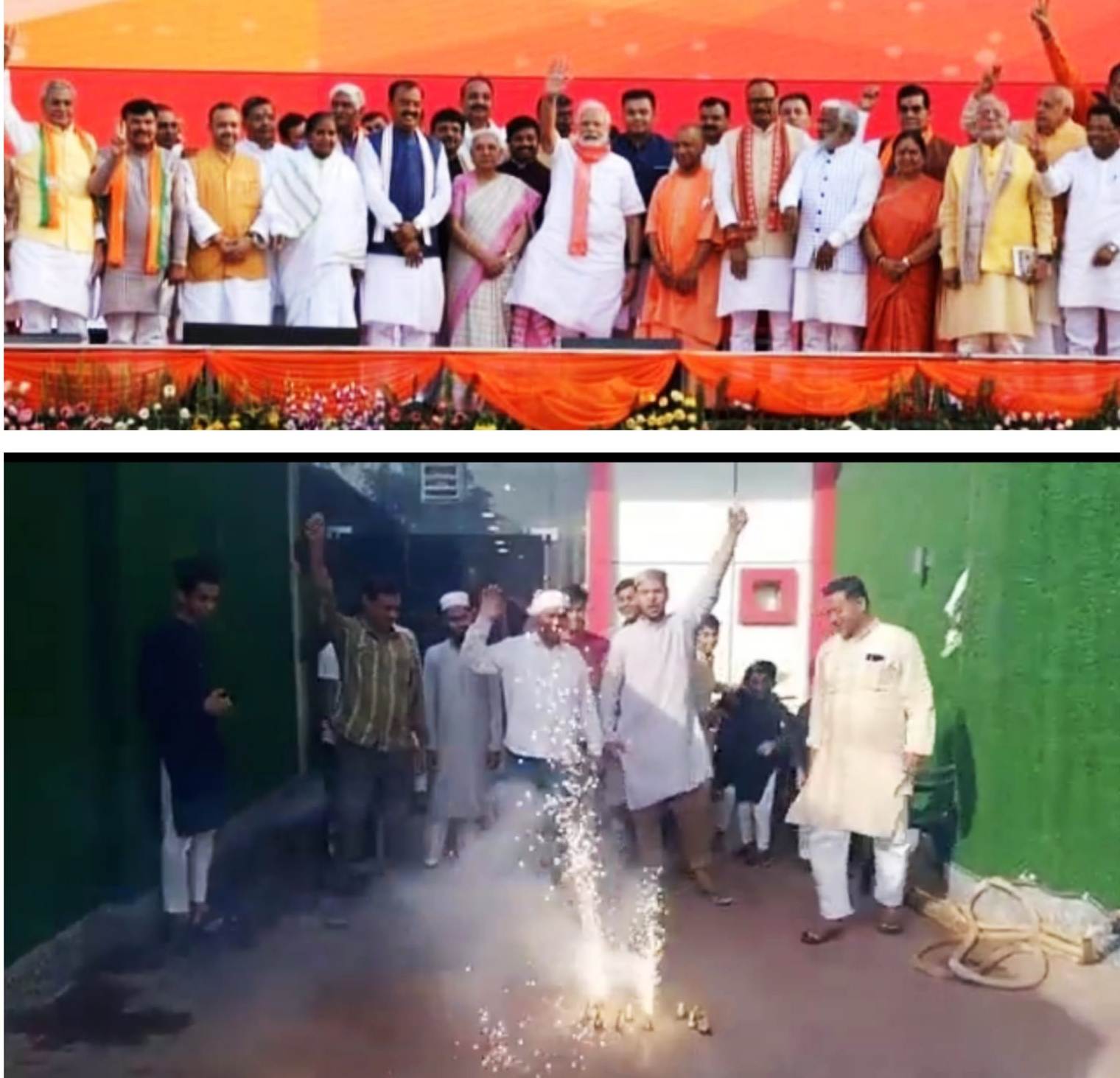 मुस्लिम क्षेत्रों में चली आतिशबाजी व बांटी गई मिठाई